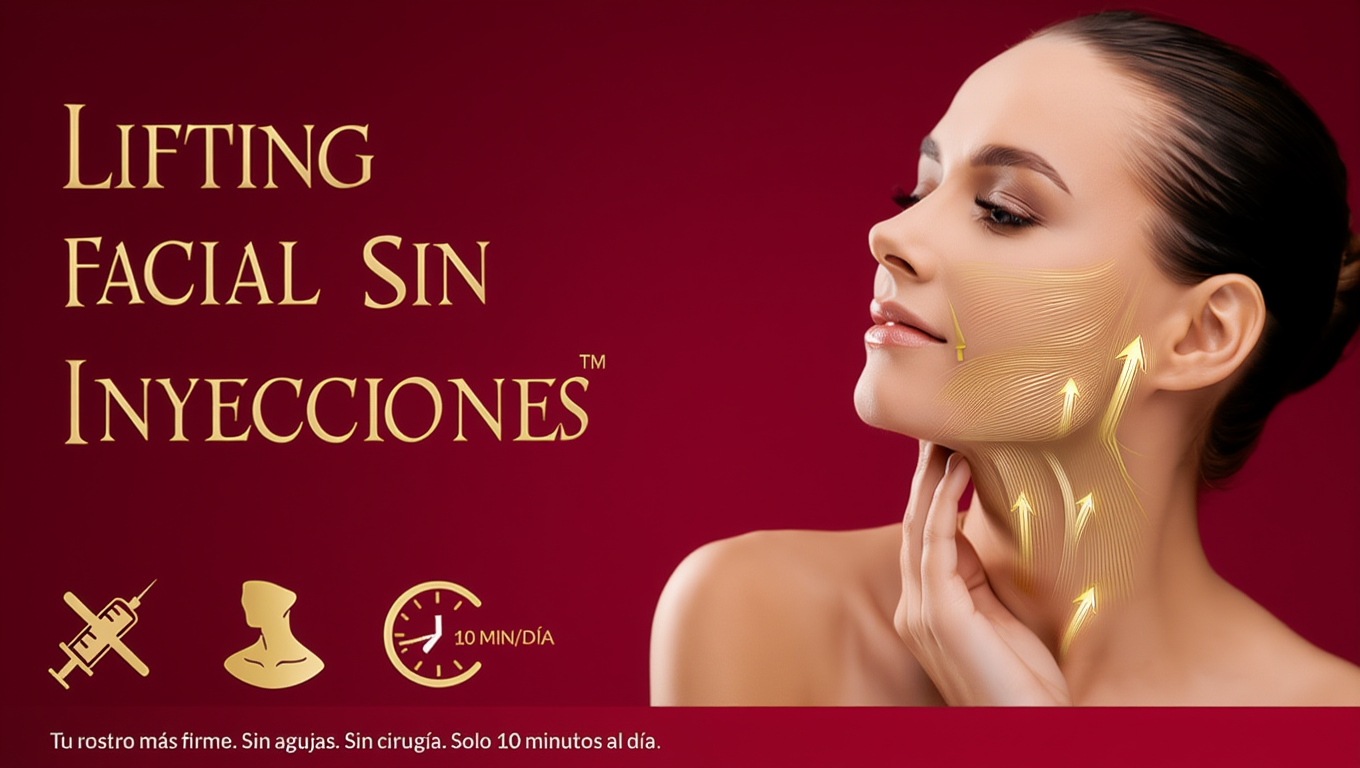 LIFTING FACIAL SIN INYECCIONES: Eleva tu mentón. Tensa tu cuello. Sin agujas. Sin cirugía.